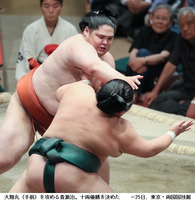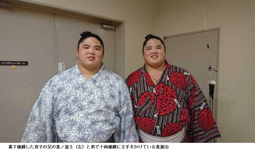 十両優勝は貴源治 幕下優勝の貴ノ富士とともに兄弟でV ―― 大相撲夏場所の十両は、栃木県出身の貴源治が千秋楽を待たずに優勝を決めました。貴源治は、幕下優勝を果たした双子の兄の貴ノ富士とともに兄弟そろっての優勝です。