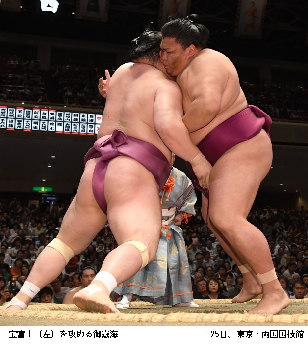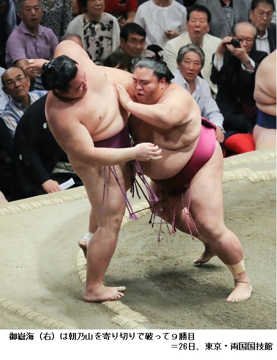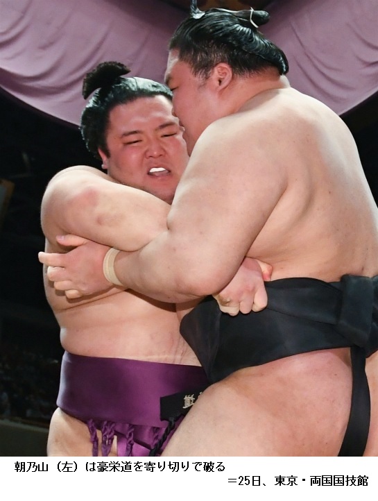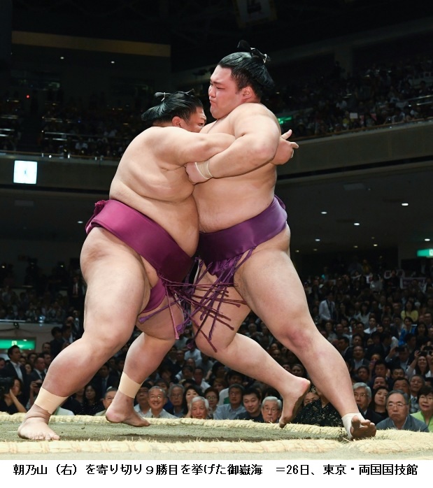 朝乃山に御嶽海は、御嶽海が寄り切り。25日、初優勝を決めた朝乃山は12勝3敗の成績でした。