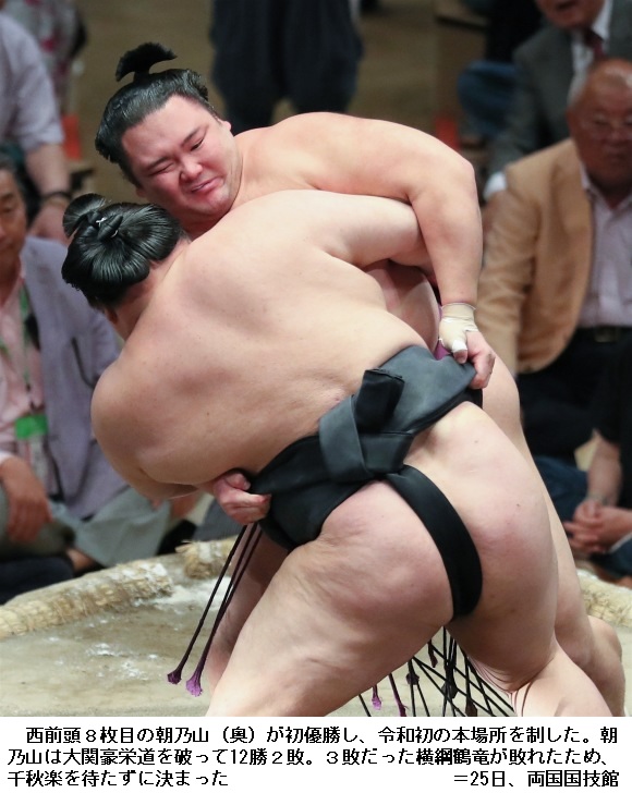 大相撲夏場所 初優勝の朝乃山は12勝3敗 ―― 大相撲夏場所は千秋楽。14日目初優勝を決めた朝乃山は小結 御嶽海に敗れ12勝3敗の成績でした。