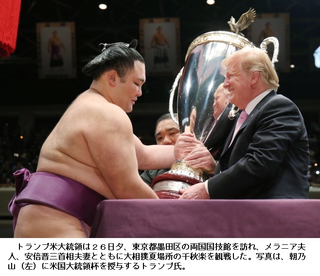 日本相撲協会の八角理事長は「トランプ大統領と安倍首相を千秋楽にお迎えすることができ、誠に光栄の至りです。ご観戦いただいたうえ、初めてのアメリカ大統領杯を授与していただきましたことに日本相撲協会を代表して深く感謝申し上げます。大統領杯は、来年以降も5月の夏場所の優勝力士に授与されることになりました。力士一同にとり、大きな励みとなります。このたびの大統領の格別のお取り計らいを糧として、私どもは日本の伝統文化である大相撲の発展に、一層努めてまいる所存です」とする談話を発表しました。