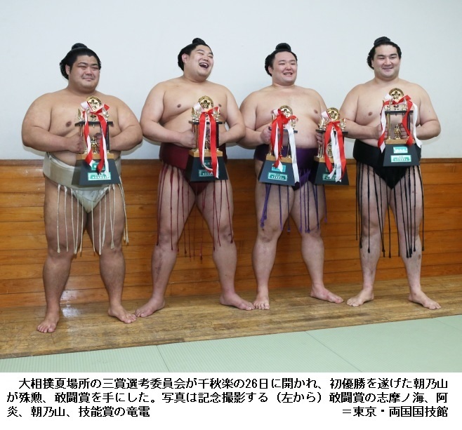 竜電も10勝目を挙げて技能賞を受賞し「三賞の受賞は、テレビの中継で知った。初めてでうれしい。技能賞はいちばんうれしい。技能はないんですけどね」と上機嫌でした。