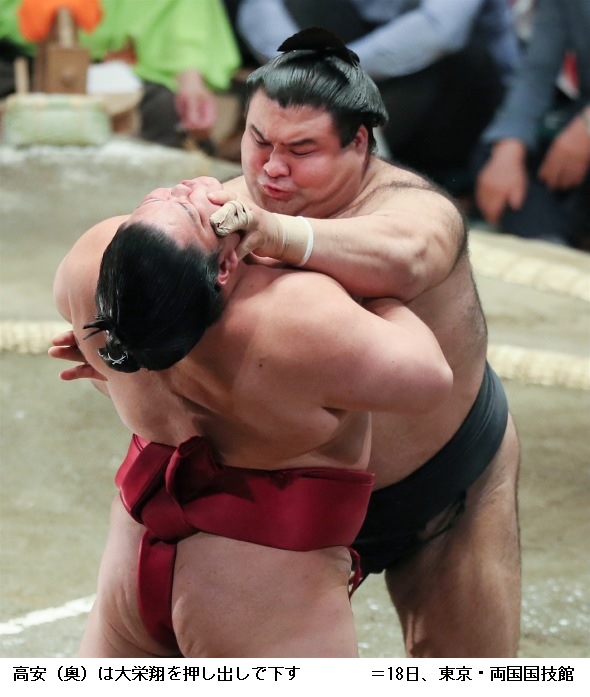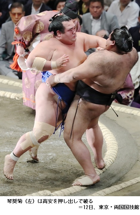 琴奨菊に大関 高安は、琴奨菊が押し出し。