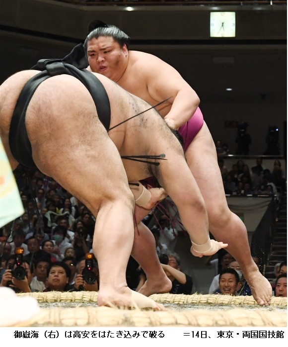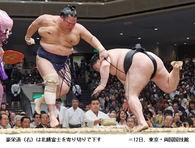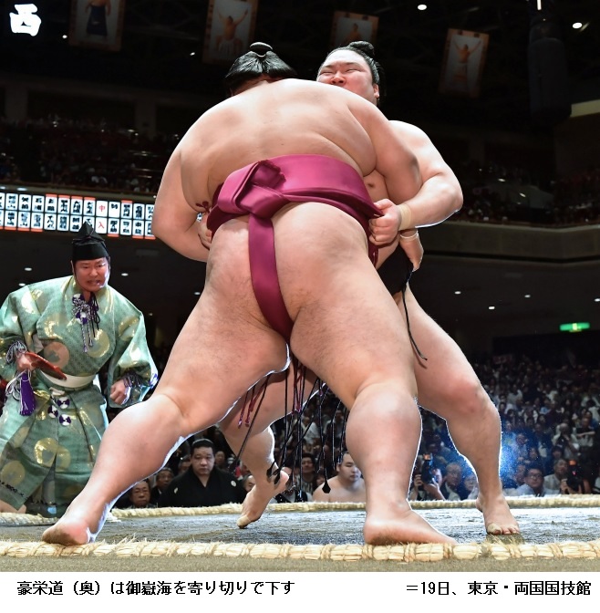御嶽海に大関 豪栄道は豪栄道が寄り切り。