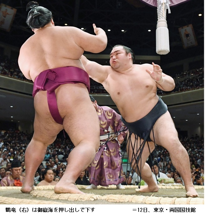 御嶽海に一人横綱の鶴竜は、鶴竜が押し出しで勝ちました。