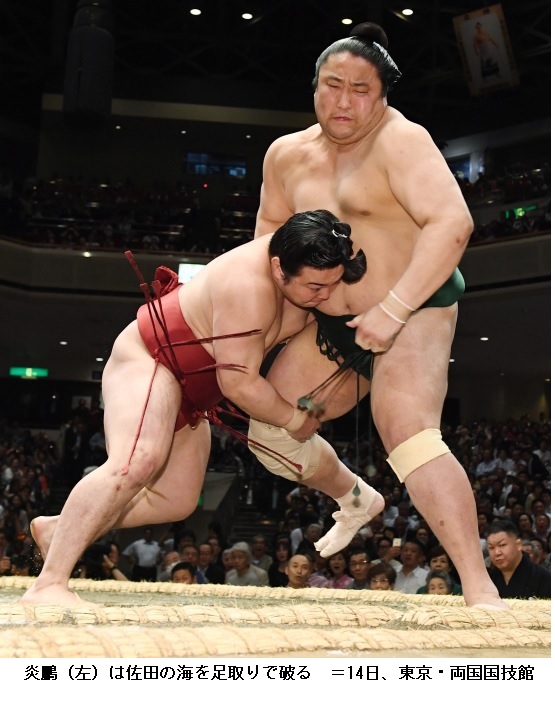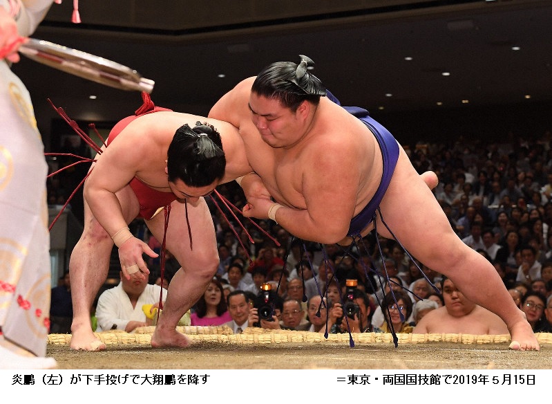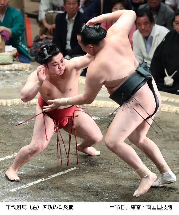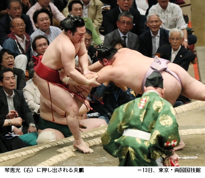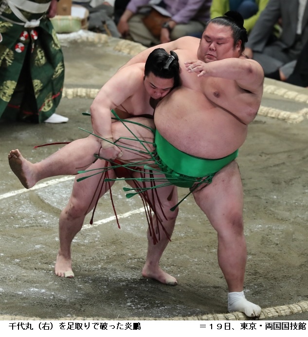 幕内で最も軽い体重99キロの炎鵬は5勝目をあげ「止まったら相手のペースなので自分から仕掛けていこうと思っていた。相撲勘はいい。決め所が見えている」と充実した表情を見せていました。