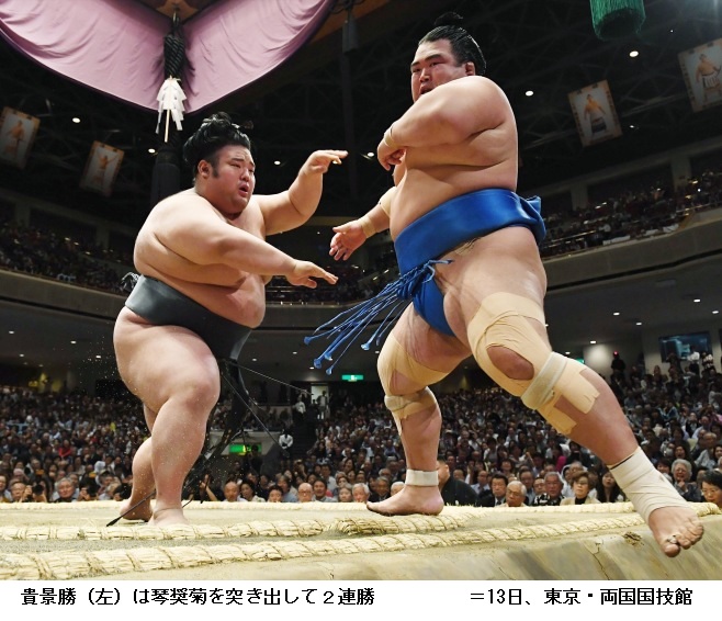 琴奨菊は「いい相撲だ。底力がある昭和生まれという気持ちを持ってね。いろいろな時代があるが、目いっぱい力を出して勝っても負けても印象に残りたいね。15日間長いから疲れないようにマイペースでいきたい」と満足している様子でした。