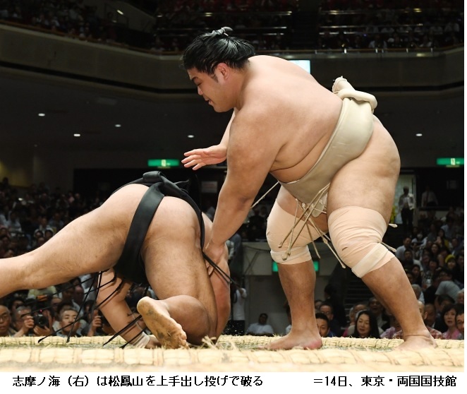 輝に志摩ノ海は、志摩ノ海が押し出し。