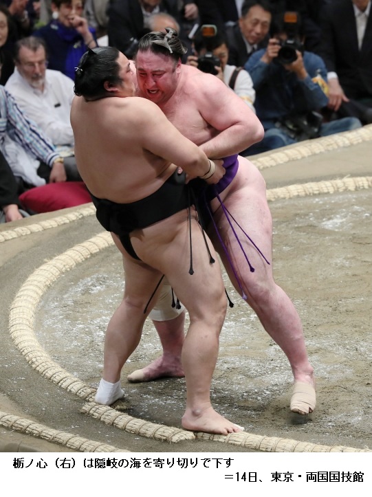千代大龍に大関から陥落した栃ノ心は、栃ノ心が寄り切り。