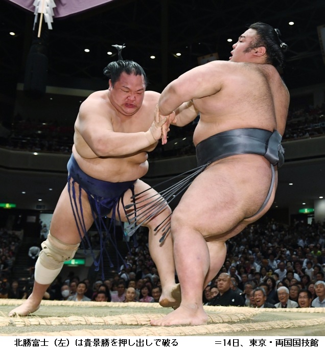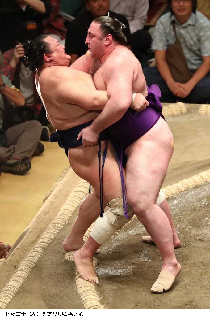 逸ノ城に北勝富士は、北勝富士が押し出し。