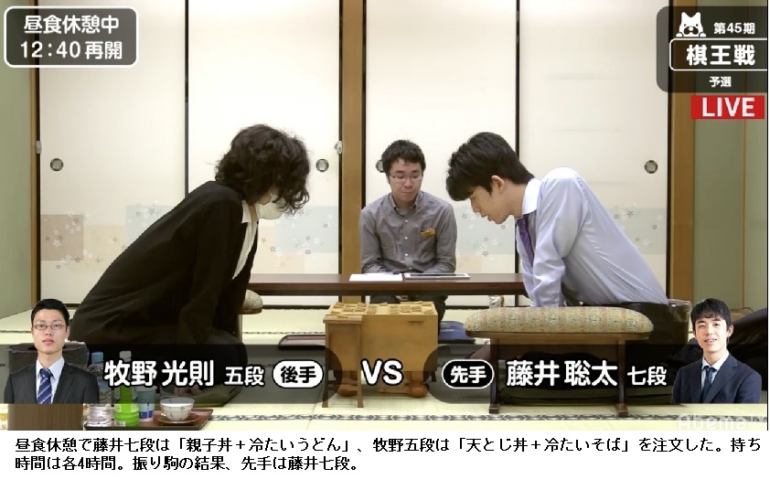 藤井七段の次の対局は15日。第45期棋王戦(共同通信社主催)の予選で、牧野光則五段(31)と対戦する。