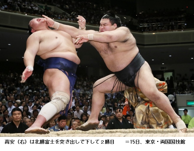 大関 高安は「前に出ることができてうまくしっかり当たることができた。あす折り返しなのでしっかり気を引き締めて巻き返していきたい」と話していました。