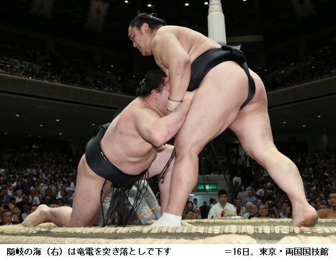 隠岐の海に遠藤は遠藤が上手出し投げ。