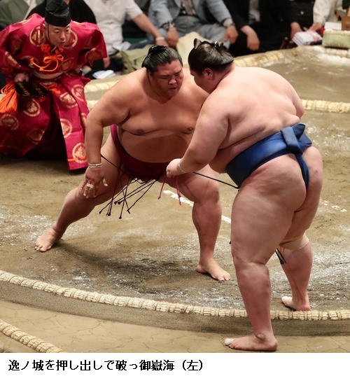 逸ノ城に大栄翔は、大栄翔が突き出し。