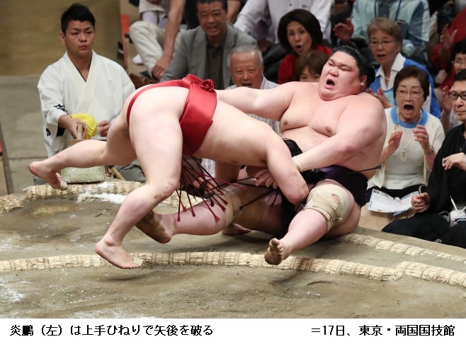矢後に炎鵬は炎鵬が上手ひねりで勝って3日目から4連勝。5勝1敗と星を伸ばしました。