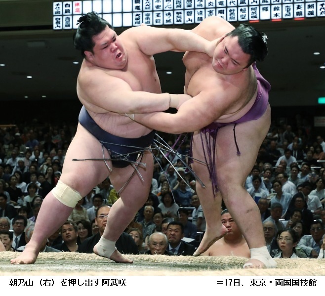 阿武咲は「しっかり、はずも決まってよかった。白星は気分がいい。元号が変わって新しいスタートという思いはあるが考えすぎもね。特にやることは変わらない」と話していました。