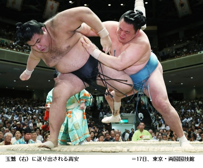 大関 高安に玉鷲は玉鷲が送り出しで勝ちました。