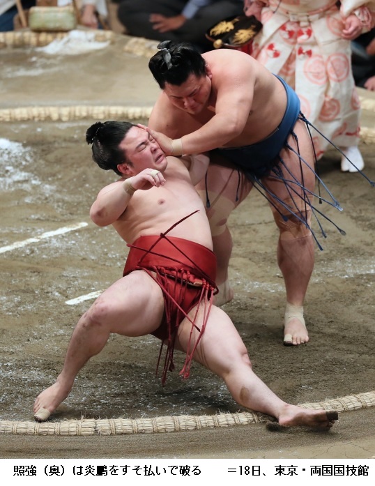 身長1m60cm台、炎鵬との小兵どうしの対戦を制した照強は「立ち合いで前に出ることを意識した。思い切り当たって1歩踏み込もうと。相手に入られたが上手を取れていたので先に動いた。裾払いは稽古場でもやっているので勝手に足が出た。幕内2場所目で気が楽だ。相手に変なライバル心はないが、小兵どうしなので互いにけがなく2人で一緒に番付を上がって行けたら」と話していました。