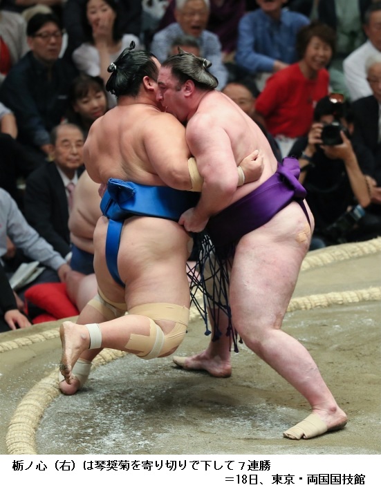 大関復帰を目指す栃ノ心は「まわしを取ってからはよかった。相手の立ち合いを止めたからよかったね。7連勝は気持ちいい。久しぶりだ。まだまだ気を抜けない、一つ一つだ」と時折、笑顔を見せていました。