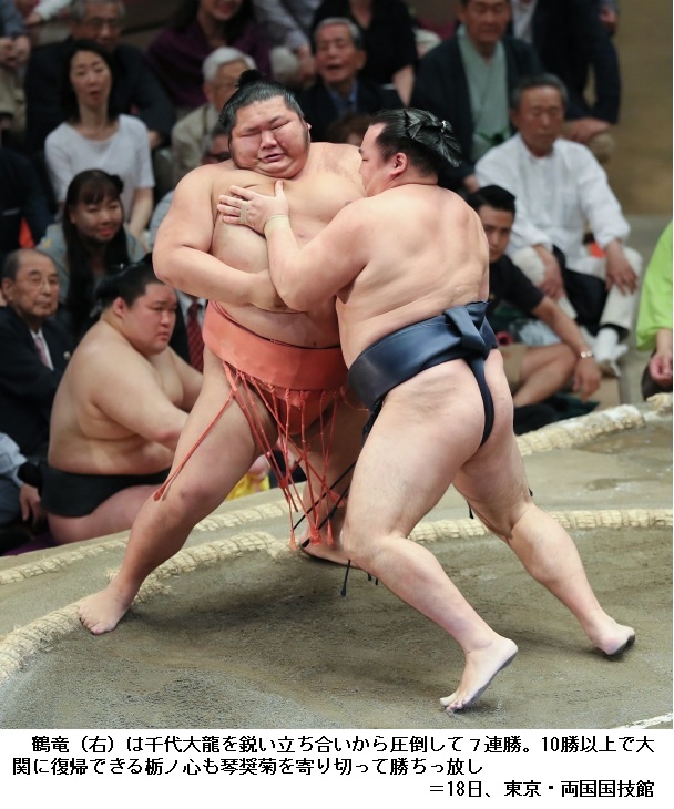 大相撲夏場所 鶴竜と栃ノ心 ともに初日から7連勝 ―― 大相撲夏場所は7日目。横綱 鶴竜と大関復帰を目指す栃ノ心は、18日もそろって勝って、初日から7連勝としました。