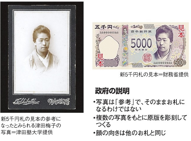 (ニュースQ3)新5千円札、津田梅子の写真を反転? ―― 2024年度にデザインが変わる新5千円紙幣の顔となる津田塾大学創設者、津田梅子の肖像が「元となった写真を左右反転している」とネットで話題を集めている。16日には菅義偉・官房長官が記者会見で言及する事態になった。どういうことなのか。