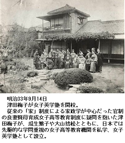 その後、女子英学塾は津田英学塾と改名し、戦災によって校舎を失いながらも、津田塾大学として今に続いております。