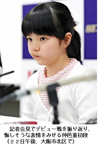 仲邑菫初段、デビュー戦敗れる 史上最年少プロ棋士 ―― 4月に囲碁の史上最年少プロ棋士となった仲邑菫(なかむらすみれ)初段(10)の公式戦初対局が22日、大阪・梅田の日本棋院関西総本部であった。同じく今春棋士となった大森らん初段(16)に敗れ、ほろ苦い黒星デビューとなった。