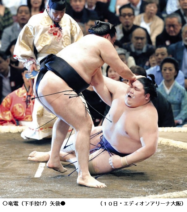 ▼友風に竜電は、竜電が下手投げで勝ちました。