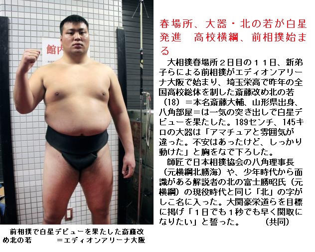 新入幕の大翔鵬は初日黒星に「難しいですね。むだに緊張して立ち合いで当たれていなかった。棒立ちだった。相撲に集中できていなかった感じがする。あすからだ」と切り替えていました。