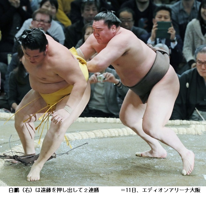 横綱 白鵬は「受け止めての突き落としは、最初から全く頭になく流れでね。しっかりやらないといけないというのはあった。ひざの感覚は先場所よりはいいかな。またあしたという感じだね」と話していました。 (NHK NEWS WEB 2019年3月10日 18時53分)