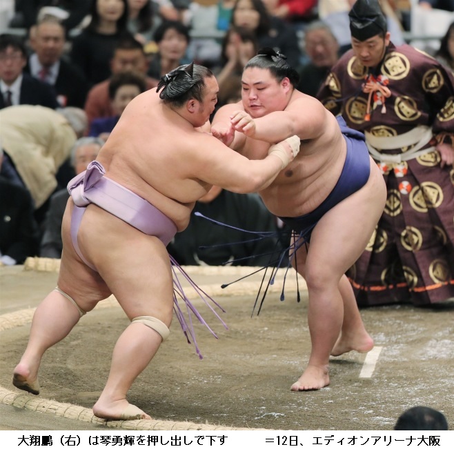 ▼新入幕の大翔鵬に輝は、輝が押し出し。