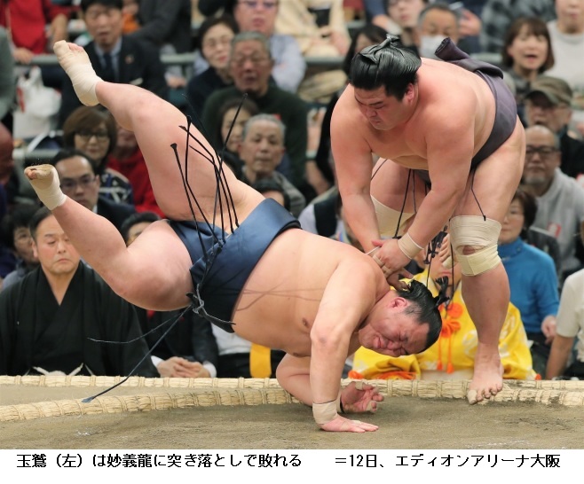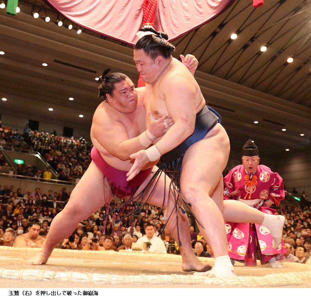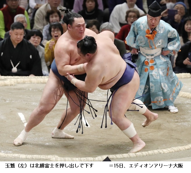 ▼関脇 玉鷲に新小結 北勝富士は、玉鷲が押し出し。