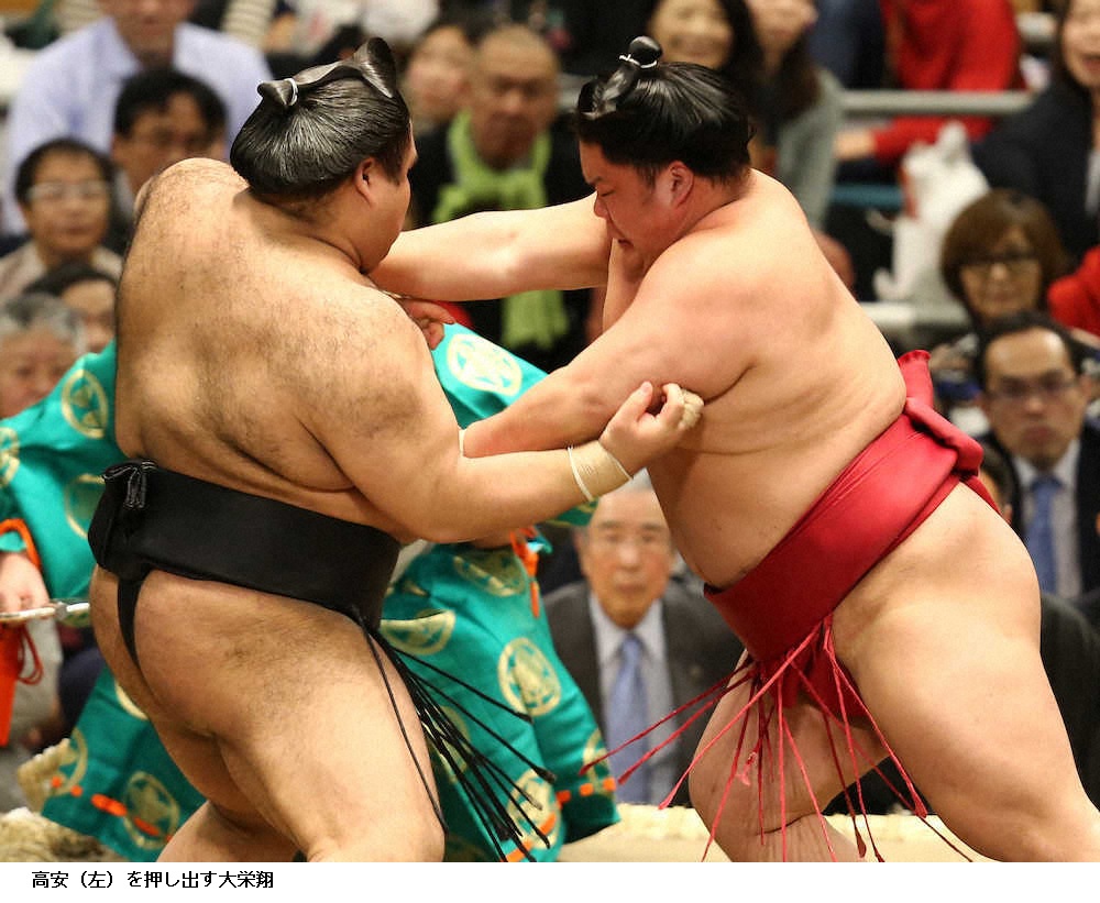 ▼妙義龍に大栄翔は、大栄翔が押し出し。