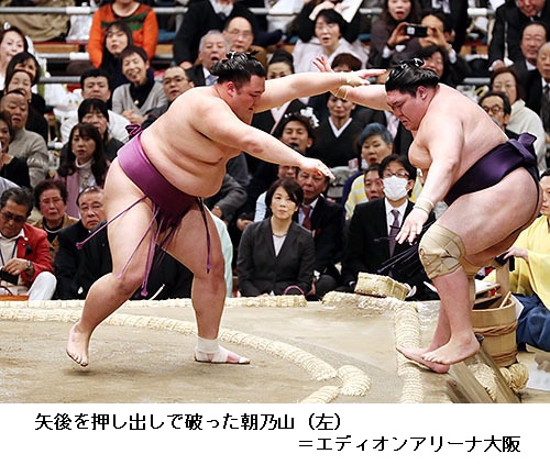 一方、敗れた新入幕の照強は「出だしとしては悪くない。立ち合いで踏み込みが足りず前みつを取れなかった。緊張しなかったので、またあすから落ち着いていい相撲を取りたい」と話していました。