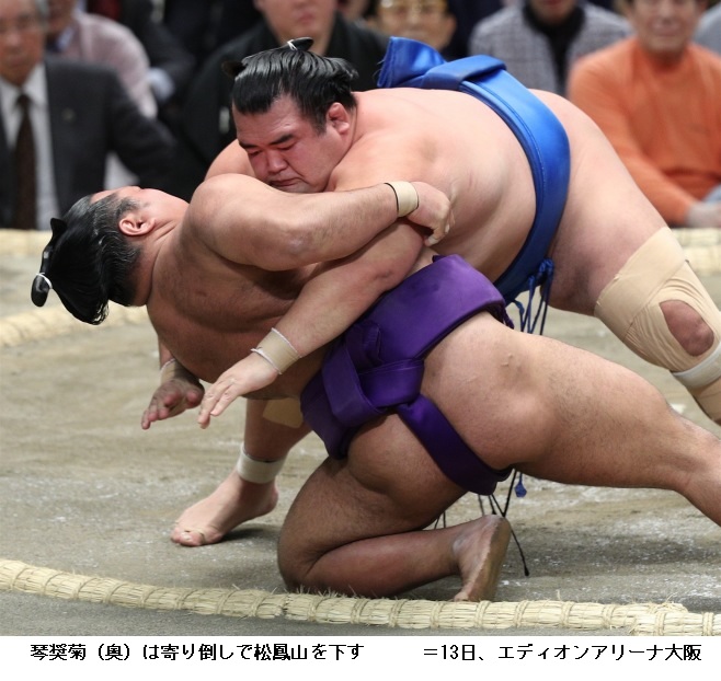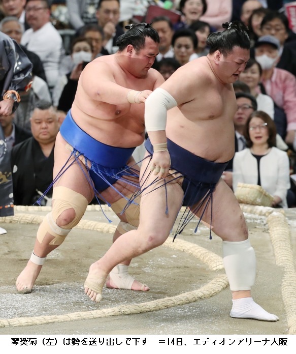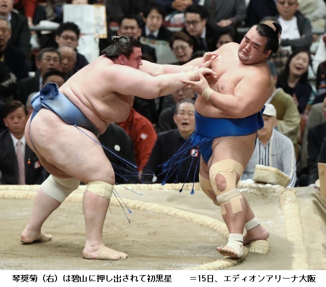▼佐田の海に琴奨菊は、琴奨菊が押し出し。
