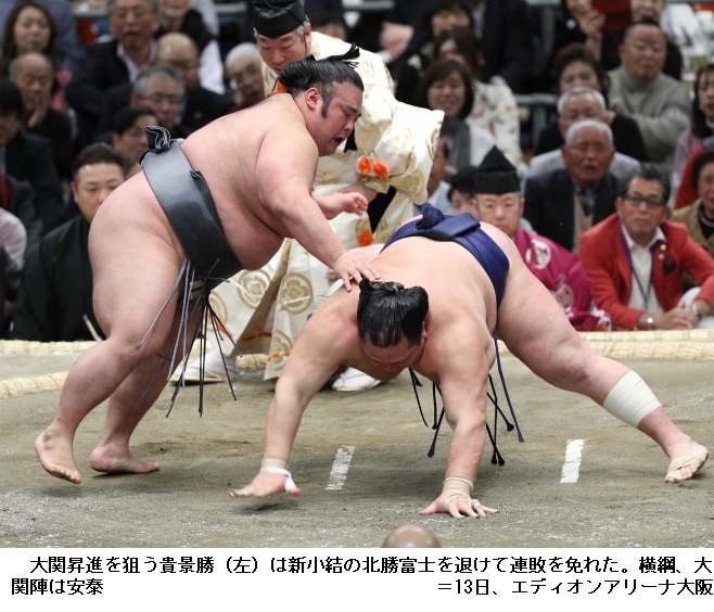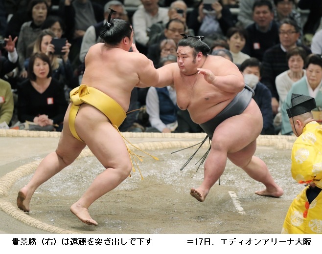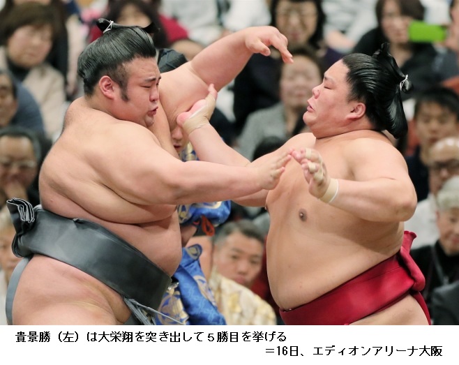 大相撲春場所7日目 貴景勝は5勝目 ―― 大相撲春場所は7日目、大関昇進がかかる関脇 貴景勝は平幕の大栄翔に勝って5勝目をあげました。