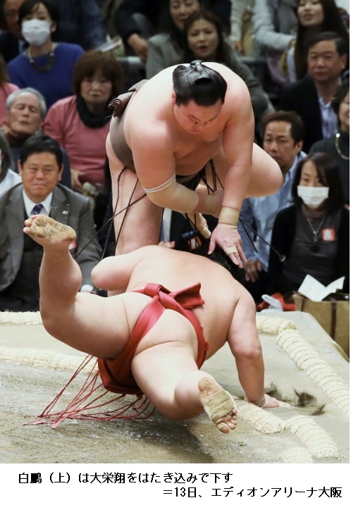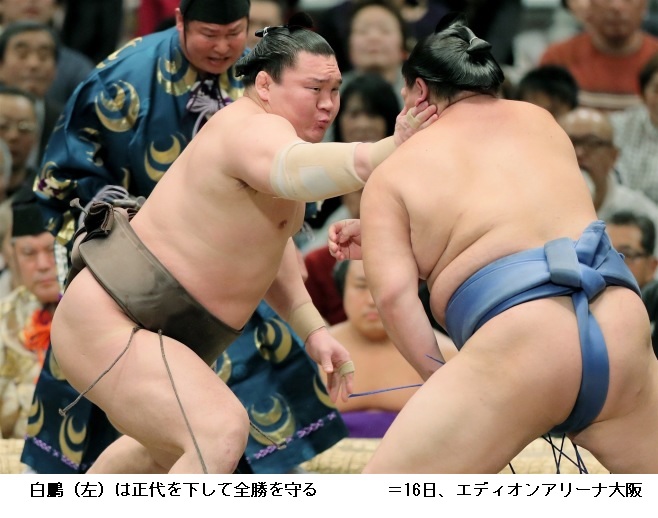 横綱 白鵬は初日から7連勝とし、16日はテレビの中継の解説を元横綱・稀勢の里の荒磯親方が務めていたため、「親方の前でいい相撲が取れてよかった」と話していました。 (NHK WEB NEWS 2019年3月16日 18時46分)