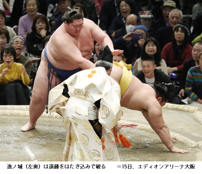 ▼遠藤に逸ノ城は、逸ノ城がはたき込みで勝ちました。逸ノ城は初日から6連勝です。