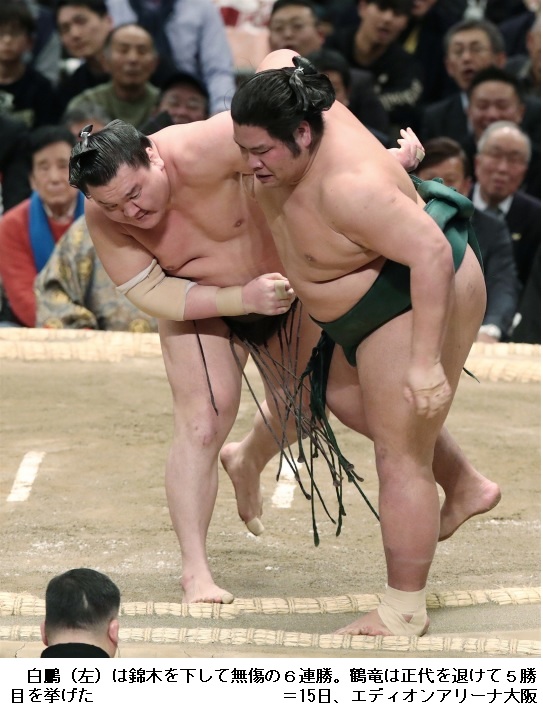 1敗を守った横綱 鶴竜は「相手をよく見て相撲が取れた。しっかり反応できている」と落ち着いた表情でした。 (NHK WEB NEWS 2019年3月15日 19時54分)
