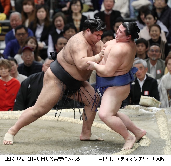 ▼正代に大関高安は、高安が押し出しで7勝目を挙げました。敗れた正代は負け越しです。