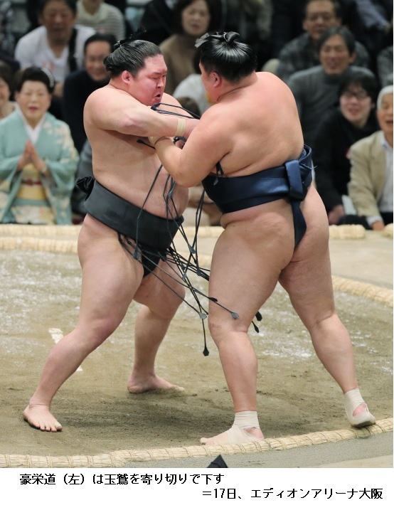 ▼大関豪栄道に関脇玉鷲は、豪栄道が寄り切りで7勝目。