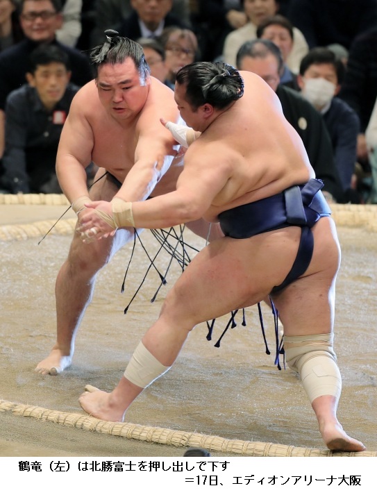 ▼ 横綱鶴竜に新小結北勝富士は、鶴竜が押し出しで勝って7勝目を挙げました。 (NHK WEB NEWS 2019年3月17日 19時03分)