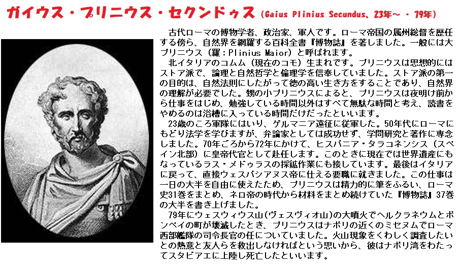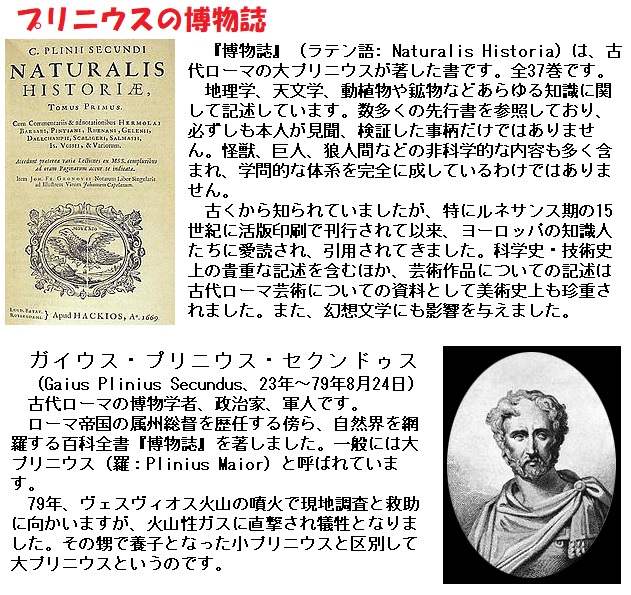 一応当時の書物に登場するのは「プリニウスの博物誌」と言う有名な歴史書のほか、何人もの人が記録に残しています。