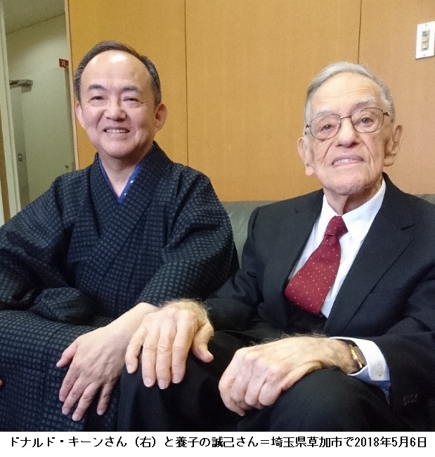 ドナルド・キーンさん死去、養子のキーン誠己さんが談話「穏やかに永遠の眠りに」 ―― 24日朝死去した国際的な日本文学研究者、ドナルド・キーンさんの養子で喪主のキーン誠己さんは同日、報道機関に向けて「父は苦しむこともなく、穏やかに永遠の眠りにつきました。自ら選んだ母国で日本人として、日本人の家族を持ち、日本に感謝の気持ちをささげつつ、幸せに最後の時を迎えました。日本文学に生涯をささげ、日本人として日本の土となることが父の長年の夢でしたから、この上なく幸せな一生だったと確信しています」との談話を発表した。