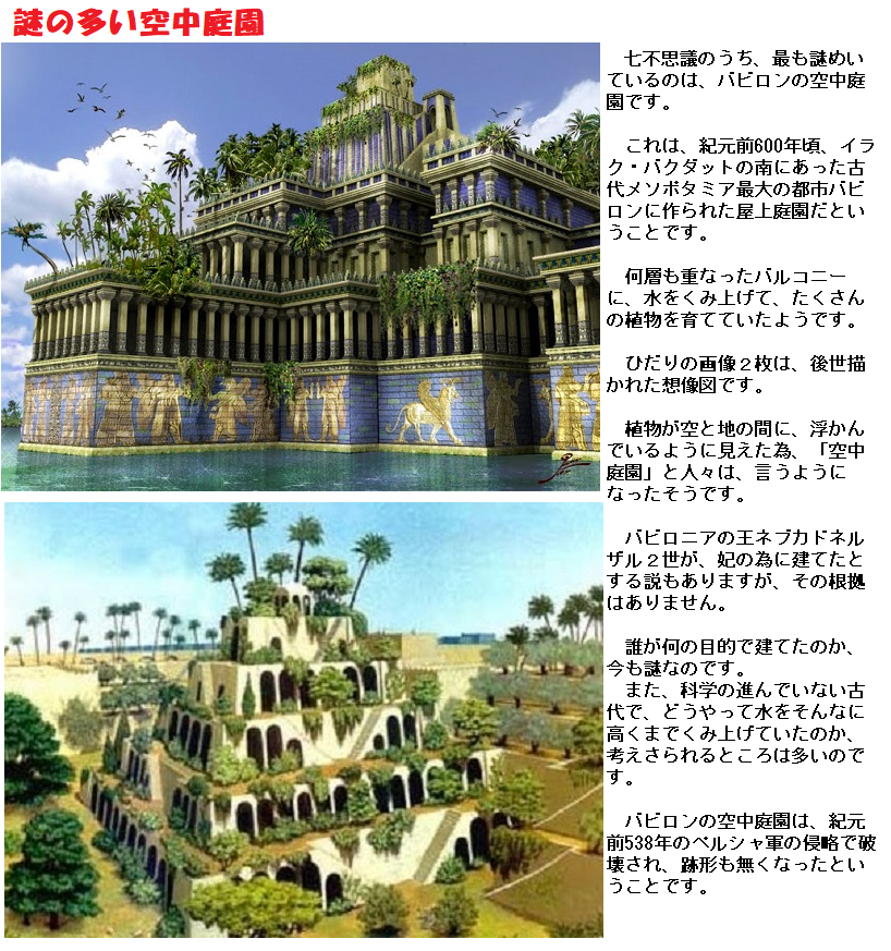 こうしてバビロンの空中庭園は造られ有名になったのです。
