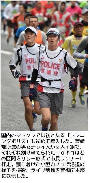 東京マラソンのコースは、来年8月に行われる東京五輪と一部が重複しており、警視庁の重久真毅警備1課長は「東京五輪に向けた試金石になる。安全な五輪開催につなげたい」と話した。 (読売新聞 2019/03/03 05:00)