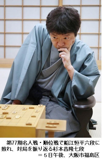 師匠の杉本昌隆七段(50)も同日、同組で船江恒平六段(31)と対局して負け、8勝1敗とした。この日、師弟共に勝てばそろってB級2組への昇級が決まったが、これで4人が8勝1敗で並び、昇級者決定は3月5日の最終戦に持ち越しとなった。