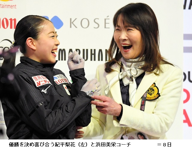 《浜田コーチの“魔法の言葉”》 この日の朝には、浜田コーチは紀平に児童文学「オズの魔法使い」の話をしたという。「ライオンが勇気をもらいに行きますよね。勇気をもらうためにこれ(試合に)に出て行くんだねって」。故障をはね返しての逆転Vは、財産になると感じている。演技後は「ライオンになれたね」とねぎらった。平昌五輪4位の宮原ら数々の教え子を励ましてきた“言葉の魔術師”らしく、巧みに気持ちを乗せた。