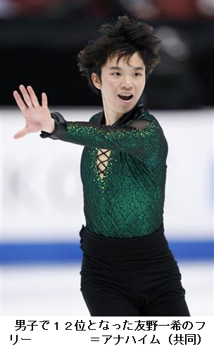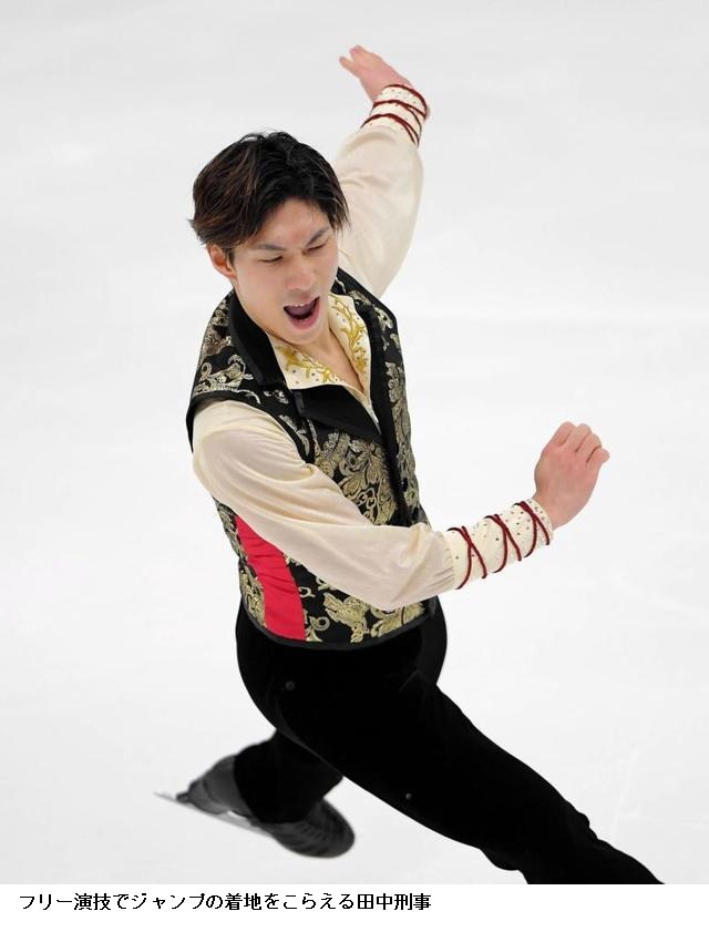 7位の田中刑事(倉敷芸術科学大大学院)は2本の4回転サルコーを着氷し、167.61点。合計251.54点で総合7位。SP12位の友野一希(同大)は4回転サルコーの失敗が響き、132.25点。合計206.41点で12位だった。