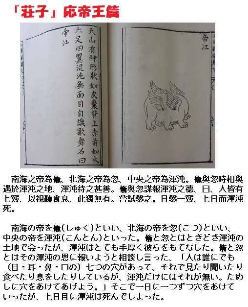「混沌」には、人が持つ七つの穴、両目、両耳、鼻の穴、口がありません。