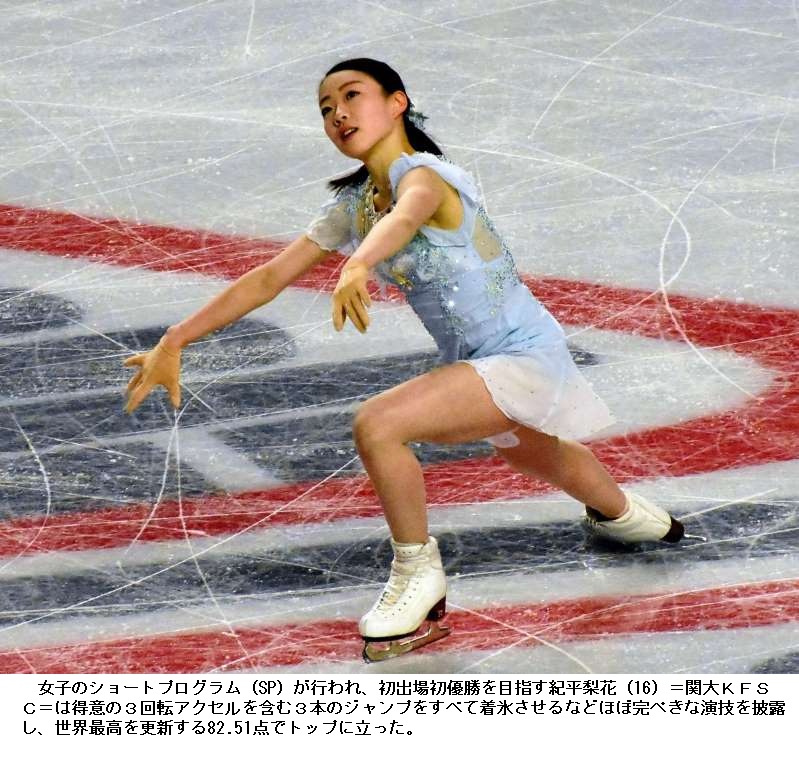 16歳の紀平は、日本女子としては2005年大会の浅田真央さん以来のGPデビューシーズン初制覇。坂本花織(シスメックス)は4位、宮原知子(関大)は6位だった。 〔毎日新聞2018年12月9日 07時57分(最終更新 12月9日 09時26分)〕